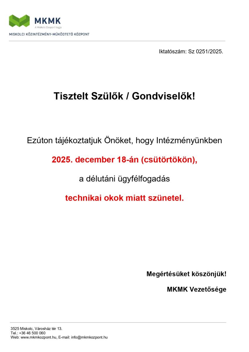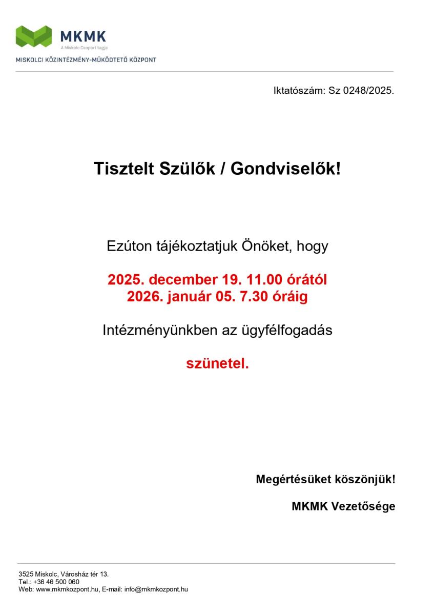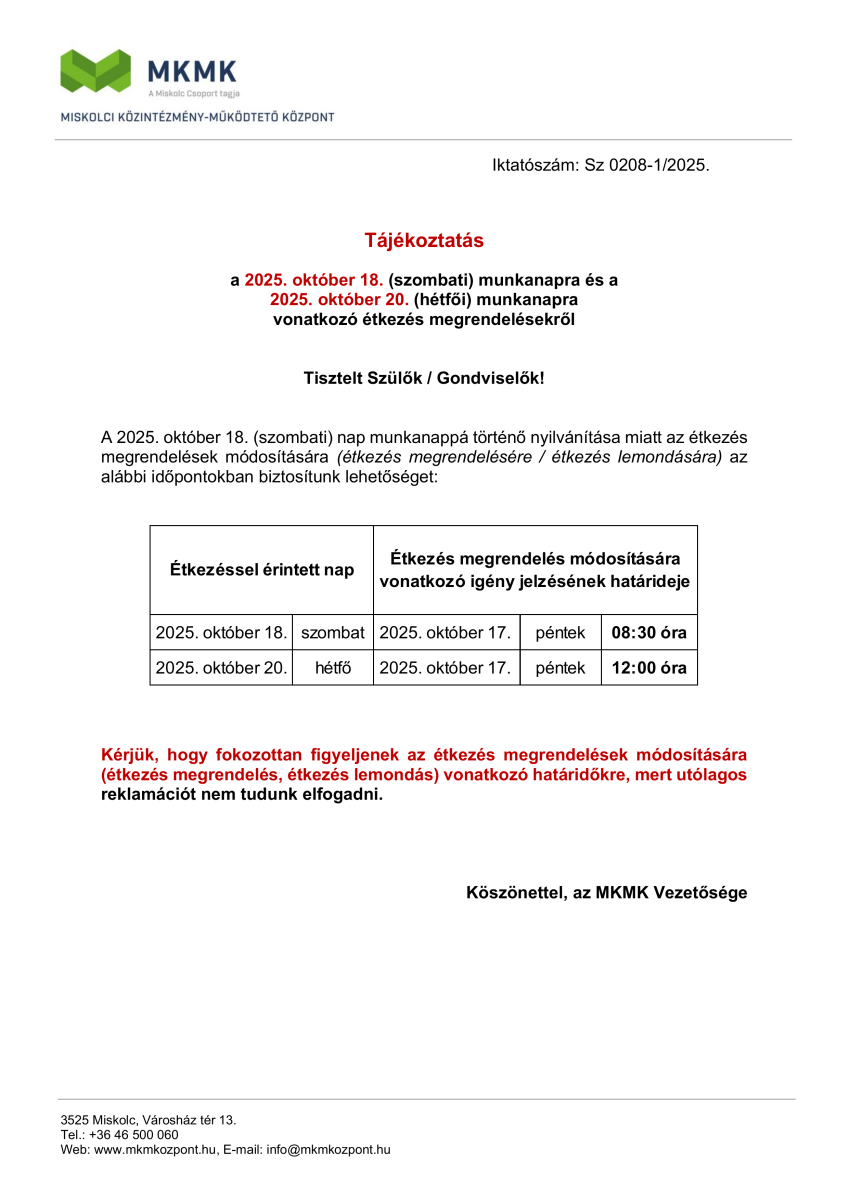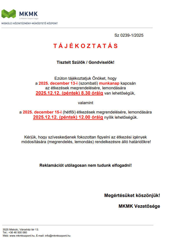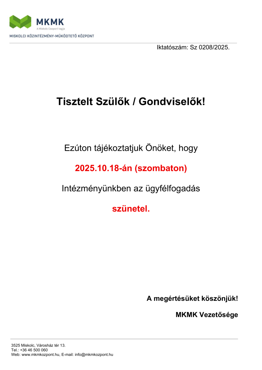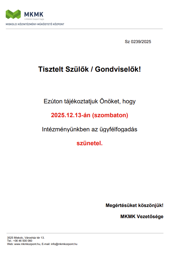 Miskolci Közintézmény-működtető Központ Cím: 3530 Miskolc, Petőfi Sándor u. 39. Tel.: 46/500-060 E-mail: info@mkmkozpont.hu │ Adatvédelemi tájékoztató